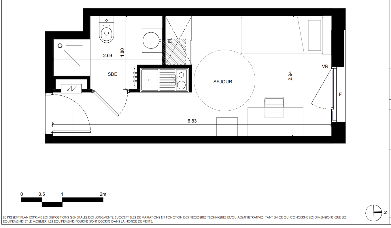 157 693€ Appt. Studio 22.01m2 0-RDC