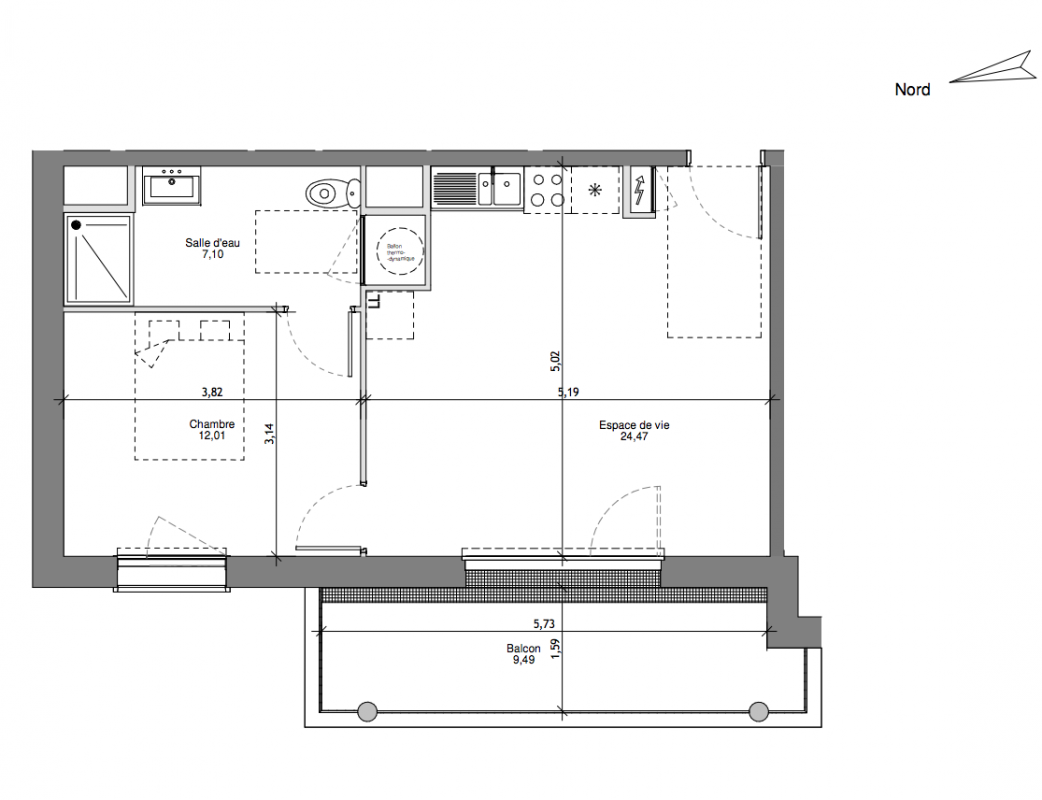 167 500€ Appt. T2 42.7m2 1er