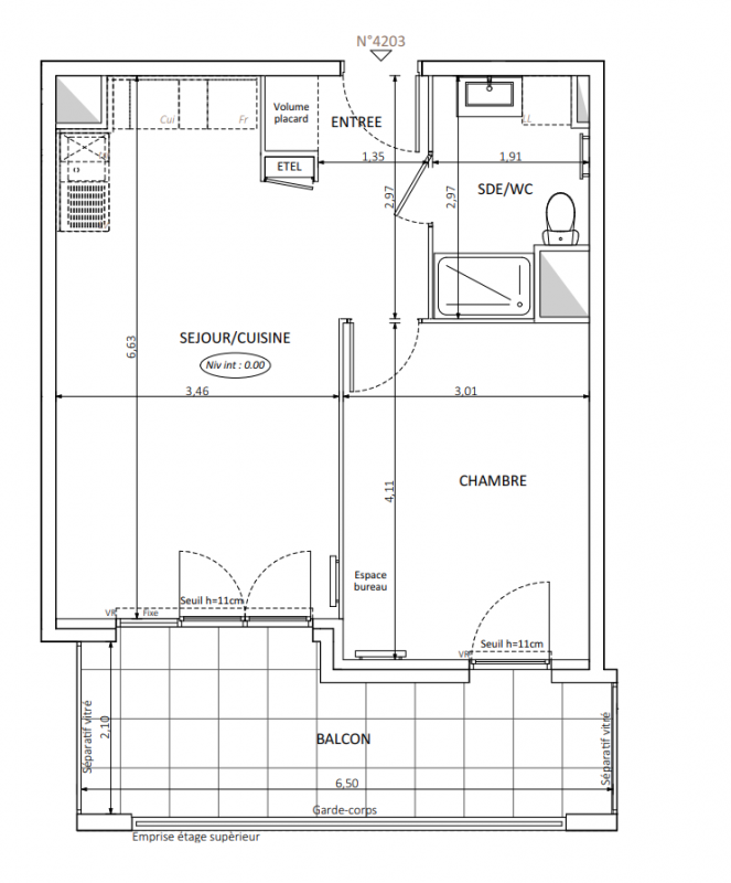 298 000€ Appt. T2 42.75m2 3ème