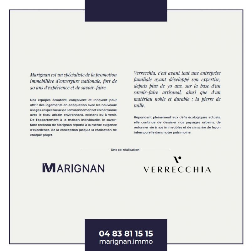 NOUVEAU à EZE ! Et si vous pouviez déjà voir la mer depuis votre futur appartement ? Découvrez dès maintenant les vues depuis notre plateforme surélevée ! Réservez votre visite. Implantée dans un environnement résidentiel d'exception, notre nouvelle adresse intimiste propose seulement 13 appartements offrant à ses habitants un cadre de vie intime et privilégié. Du 2 au 4 pièces, chaque appartement bénéficie d'un espace extérieur avec terrasse, ou jardin privatif, prolongeant harmonieusement les pièces à vivre. En dernier étage, certains logements profitent d'un rooftop qui offre une véritable terrasse suspendue avec une vue imprenable sur la mer. Résolument contemporaine, l'architecture de la résidence s'intègre avec élégance dans le paysage naturel d'Èze, entre mer et collines. Une piscine collective vient enrichir les prestations haut de gamme pour un quotidien placé sous le signe du bien-être. Les places de parking en sous-sol garantissent confort et sécurité, tandis qu'un local à vélos complète les équipements pratiques de la résidence. À seulement quelques minutes en voiture du village médiéval d'Èze et de ses commerces, la résidence bénéficie d'un emplacement idéal entre Monaco et Nice. Elle allie une architecture soignée, des prestations de standing et un cadre naturel exceptionnel. Contactez-nous dès maintenant un de nos conseillers pour découvrir tous nos appartements neufs d'exception à EZE et être parmi les premiers à choisir le logement de vos rêves !Une co-promotion Marignan et Verrecchia