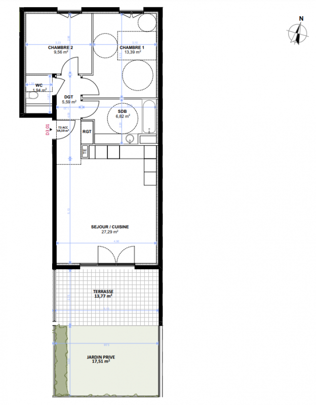 - 3 pièces : coeur de cible primo-accédants, couples avec projet familial.
