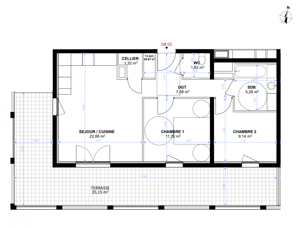 L'ensemble est conforme à la RE 2020 - seuil 2025, garantissant performance énergétique, charges maîtrisées et valorisation patrimoniale dans le temps.