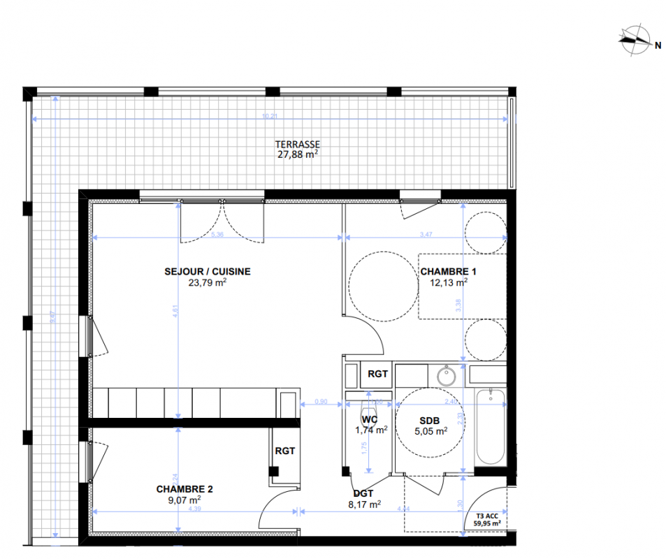 - 3 pièces : coeur de cible primo-accédants, couples avec projet familial.