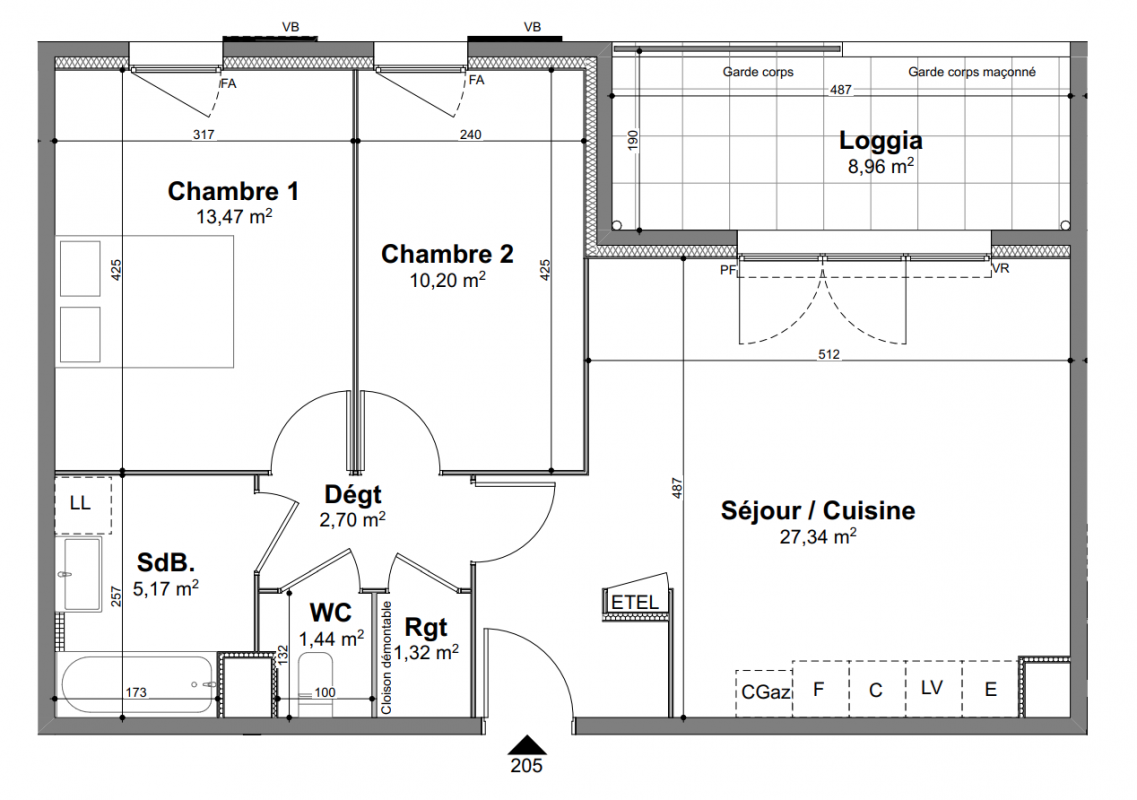 272 100€ Appt. T3 60.85m2 2ème