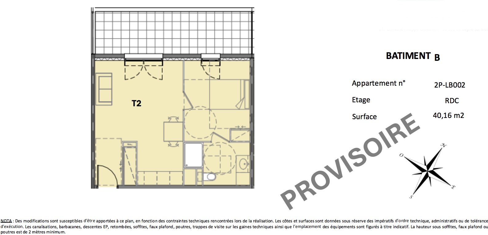 | Voir | Disponible | 259 200€ | LB006 | Appt. | T2 | 40.98m2 | 0-RDC | Disponible | 259 200€ | Voir |